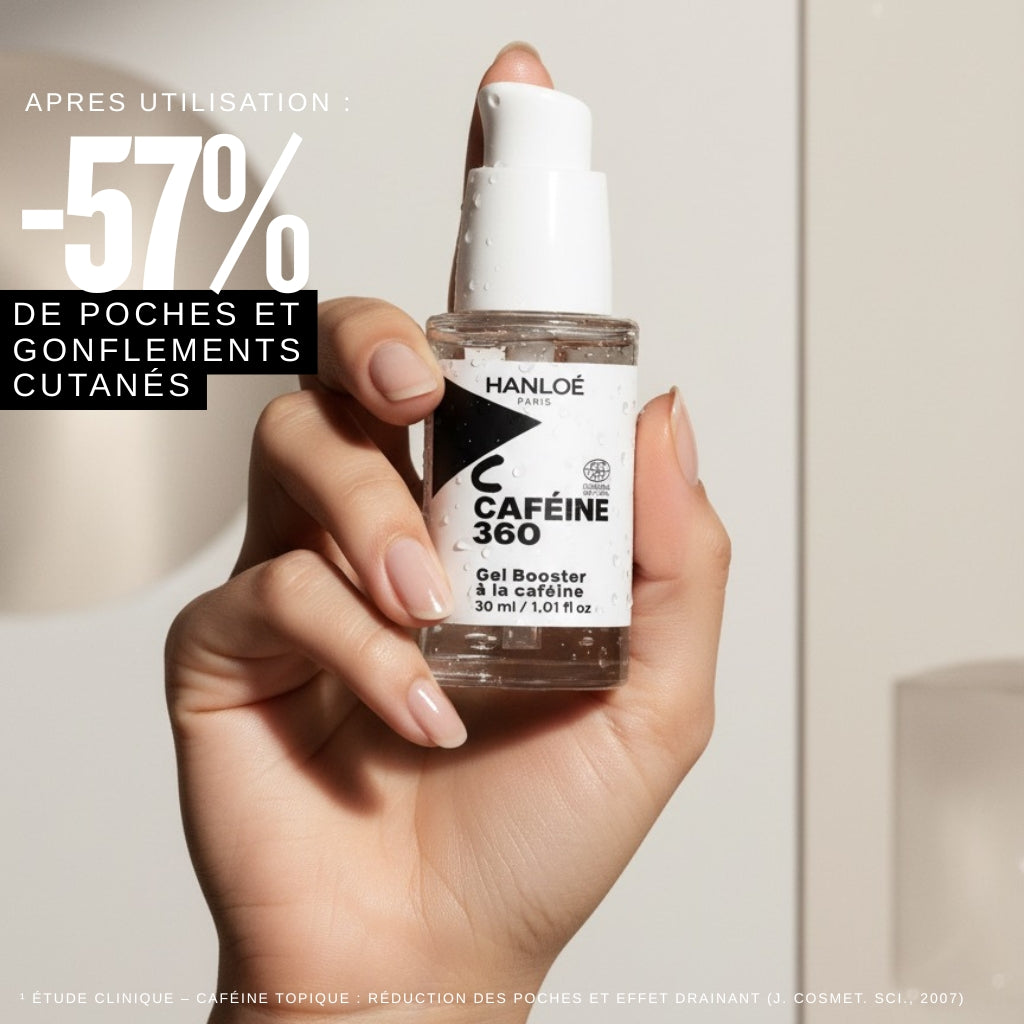 ¹ Étude clinique – Caféine topique : réduction des poches et effet drainant (J. Cosmet. Sci., 2007)